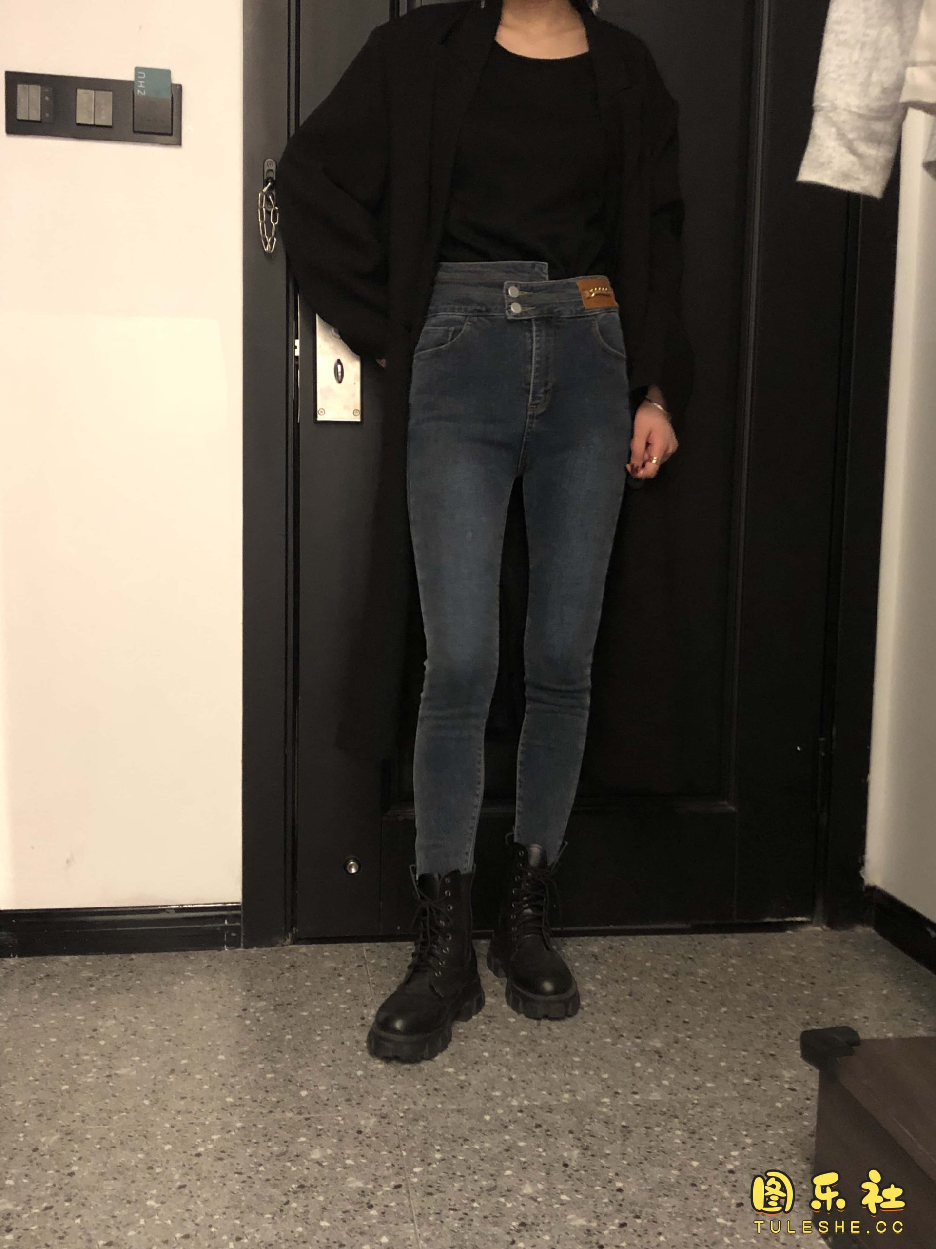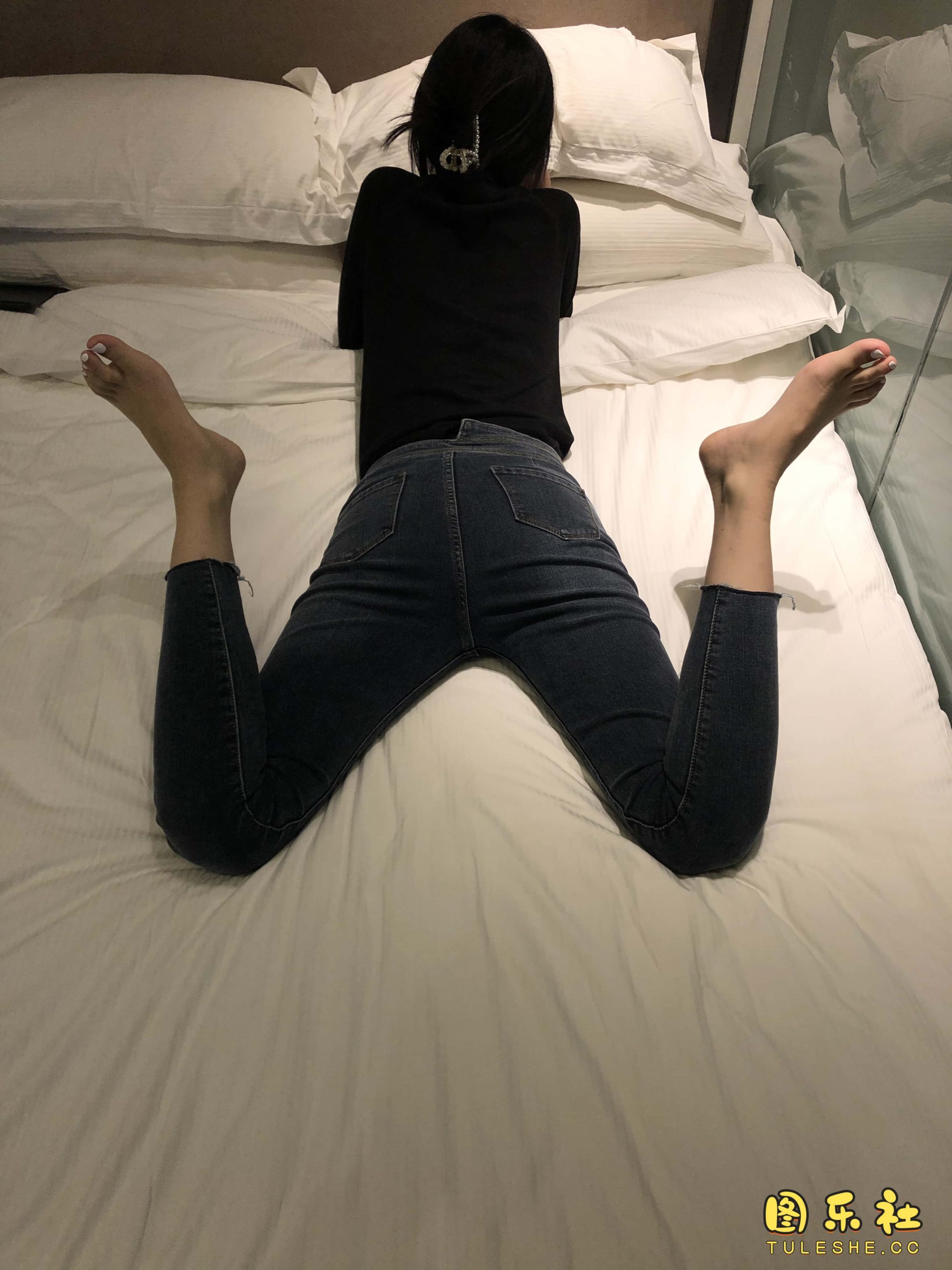 [本足摄影]模特女神 牛仔裤黑靴裸足