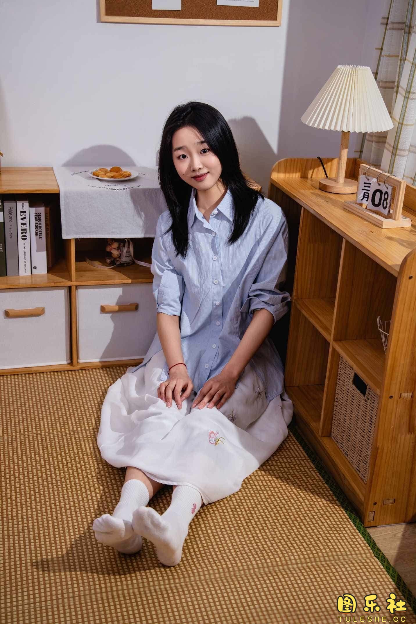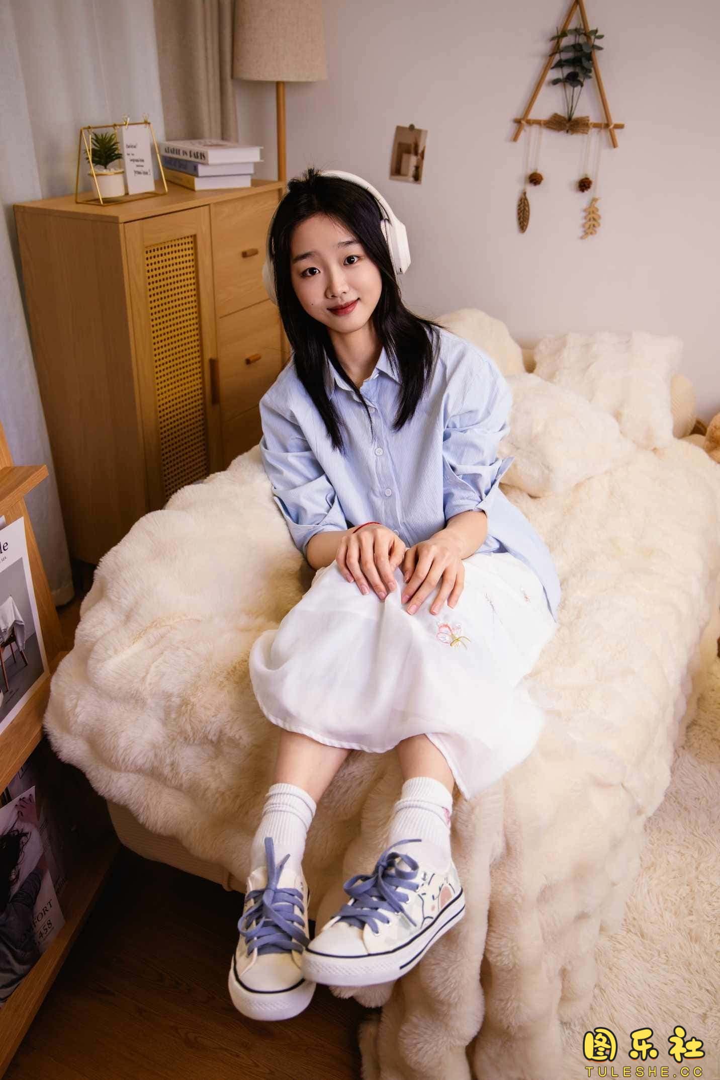 搭配:蓝色衬衫、白色长裙、帆布鞋、白色棉袜、裸足