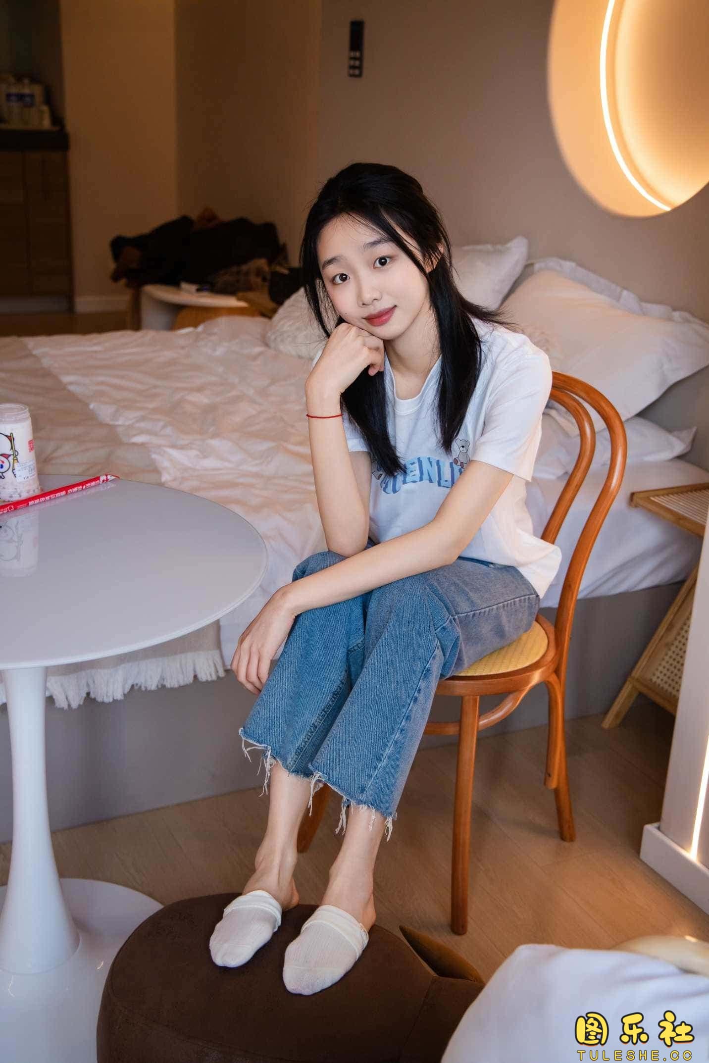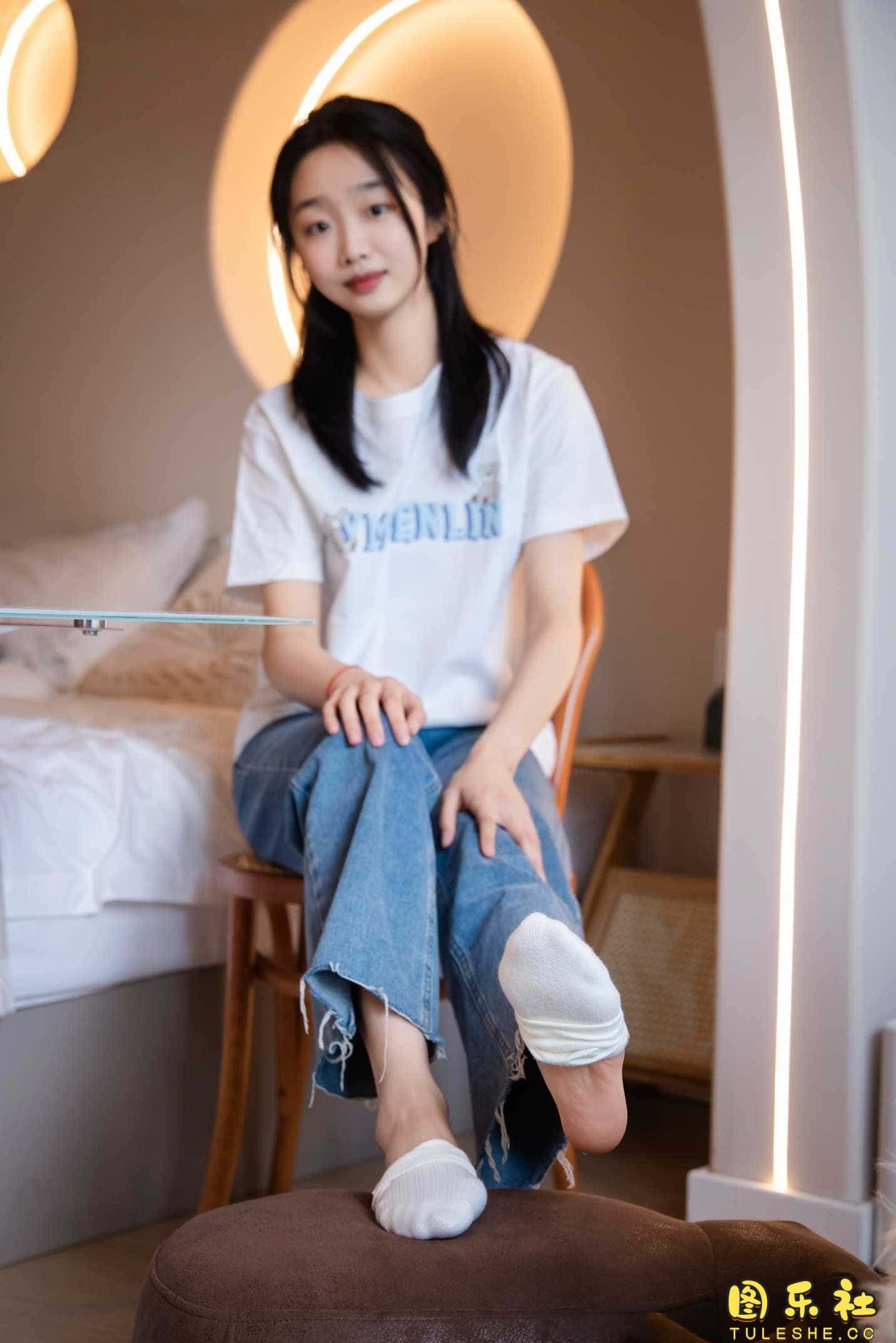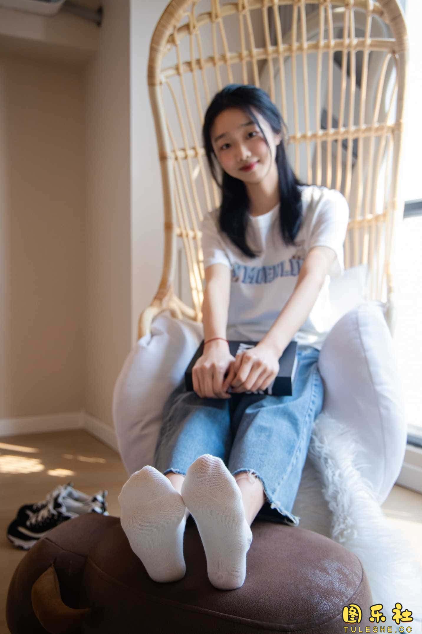 搭配:白T恤、牛仔裤、运动鞋、白色棉袜、裸足