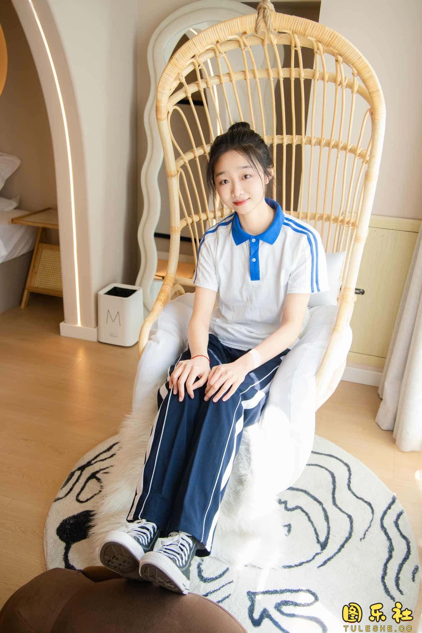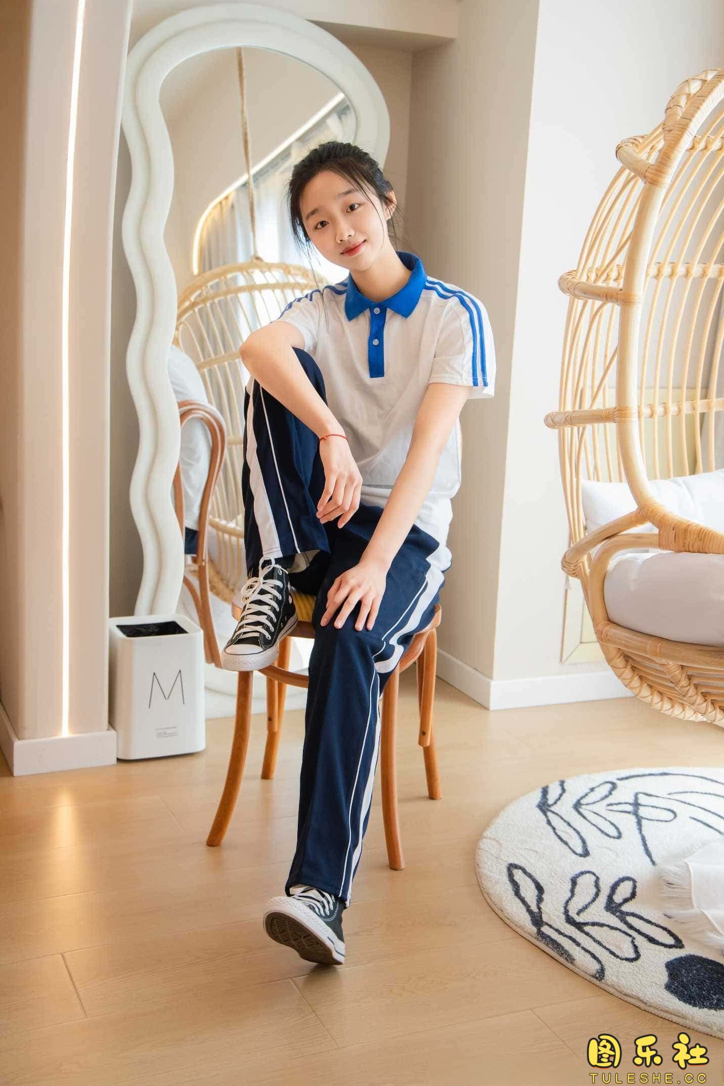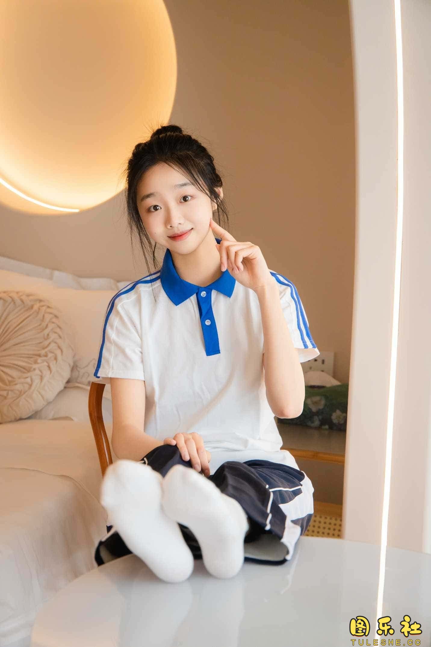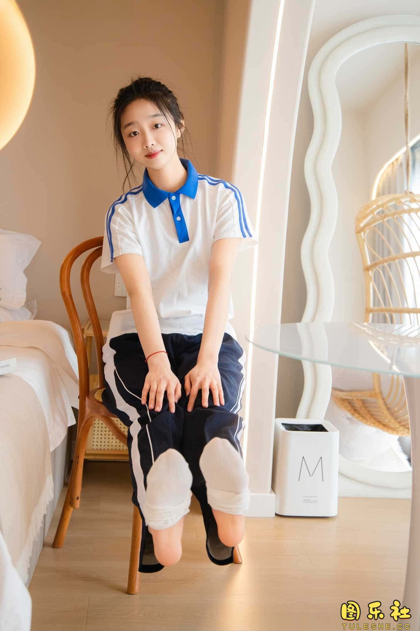 搭配:校服、帆布鞋、白色棉袜、裸足