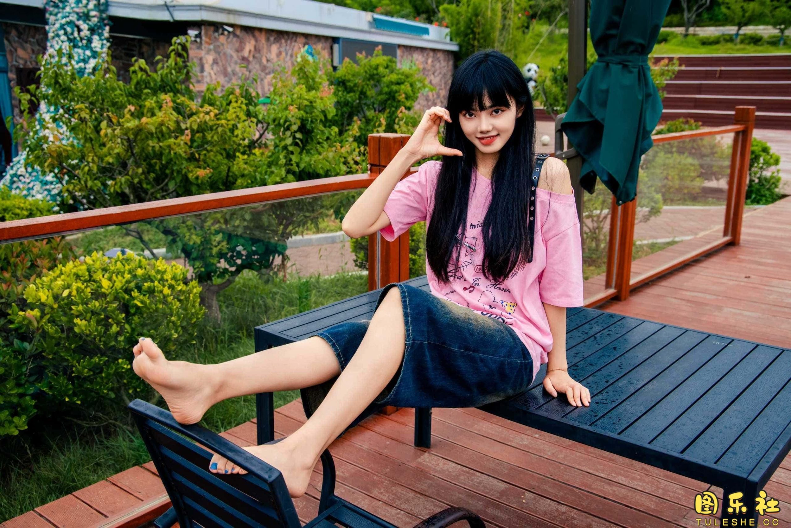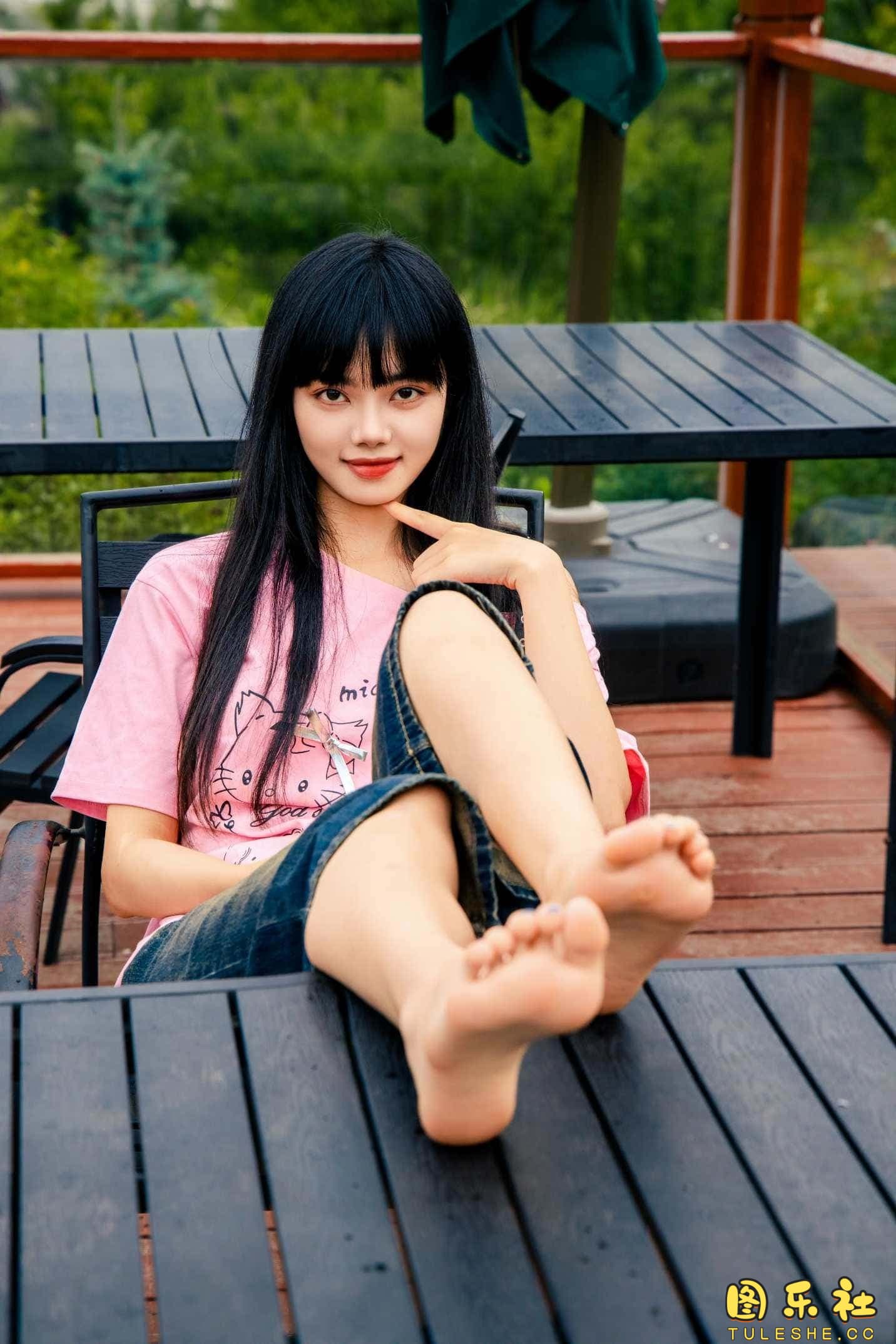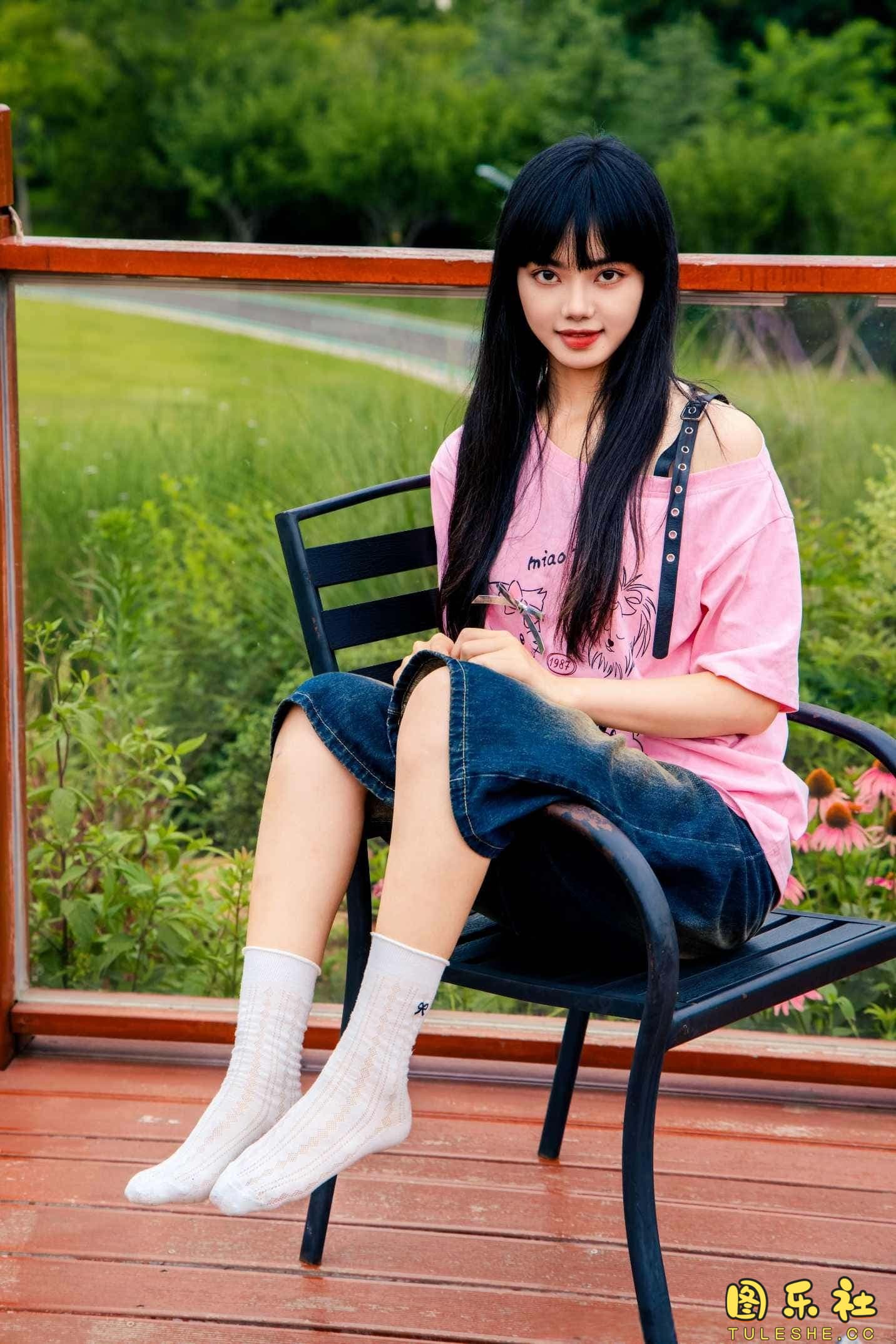搭配:粉色T恤、牛仔短裤、白棉袜、德训鞋、裸足